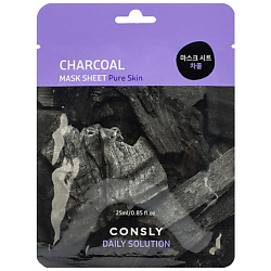Consly Тканевая маска для лица с древесным углём Facial Tissue Mask With Charcoal Extract