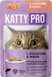 Корм влажный Katty Pro с лососем в желе для кошек 75г