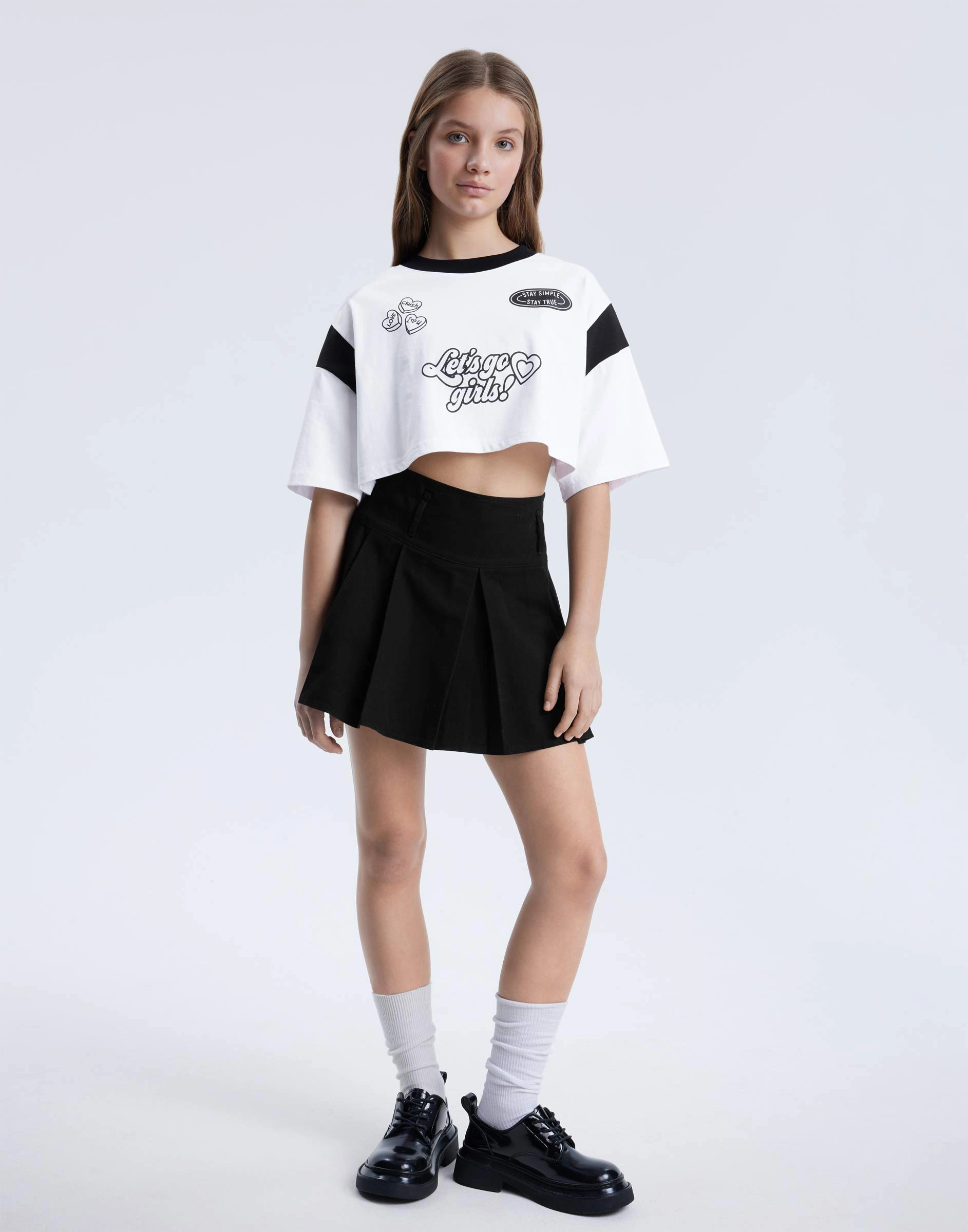 Белая укороченная футболка oversize с принтом Gkt025633-2