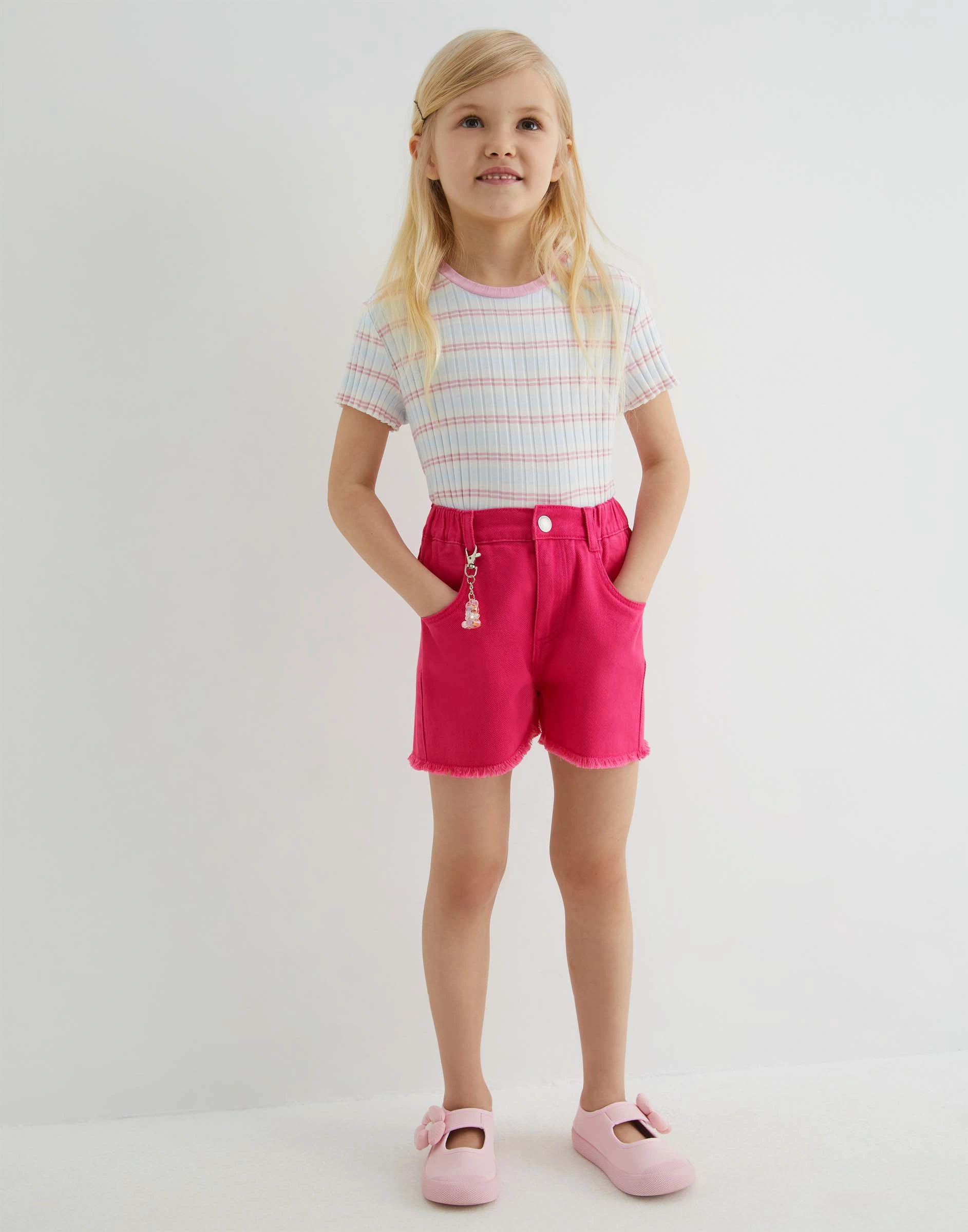 Малиновые шорты из твила с брелоком для девочки Gsh012963-2