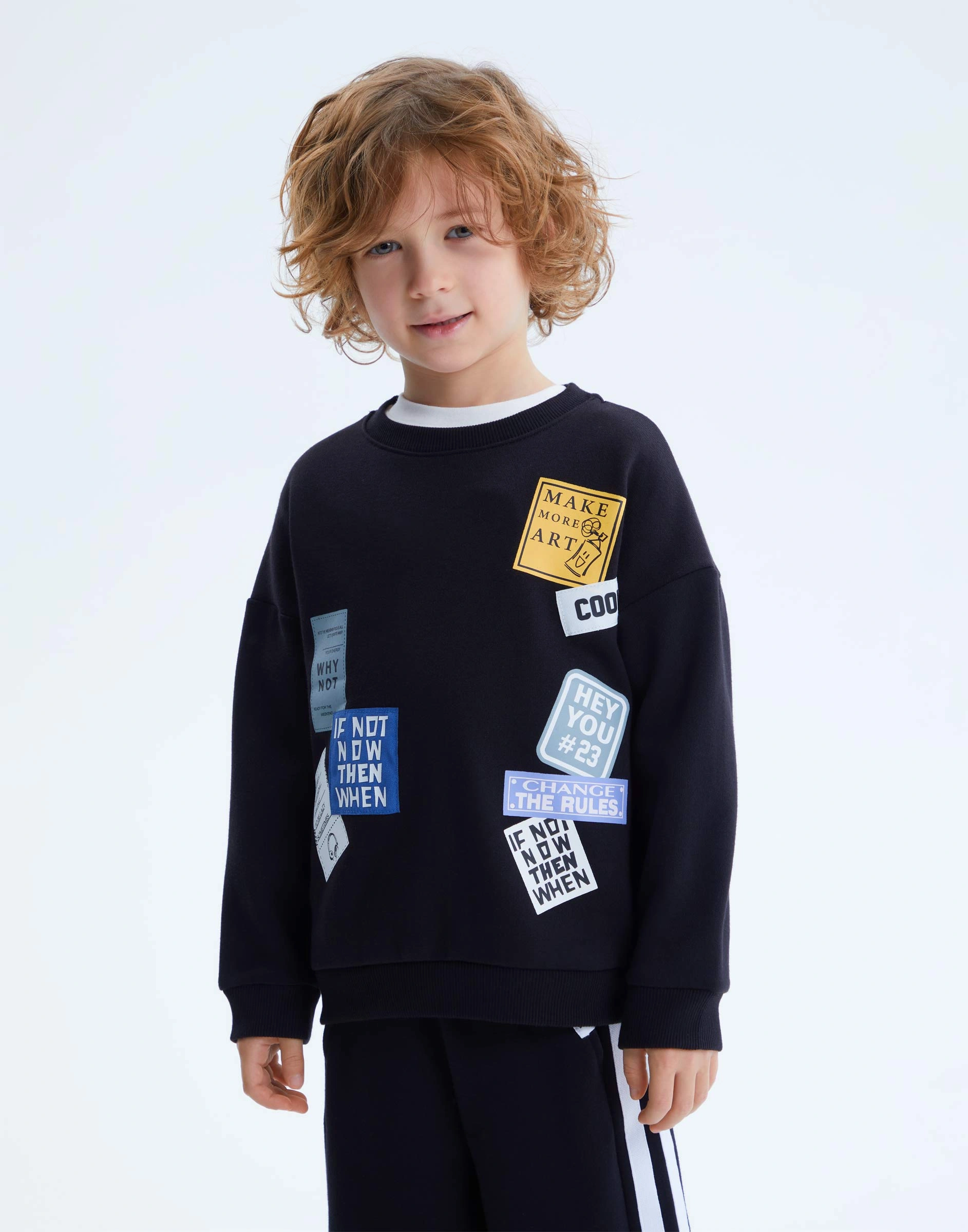 Чёрный свитшот oversize с принтом для мальчика Bac013495-2