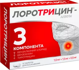 Лоротрицин-алиум таблетки для рассасывания 1мг+1.5мг+0.5мг 12шт