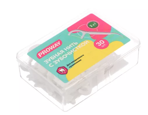Proway Зубочистки пластиковые с зубной нитью, 30 шт.