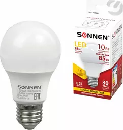 Лампа светодиодная Sonnen, 10(85)Вт, Е27, грушевидная, теплый/белый, Led A60-10w-2700-e27, 453695