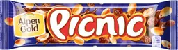 Батончик Alpen Gold Picnic с арахисом и изюмом начинкой из мягкой карамели вафель и воздушного риса покрытая молочным шоколадом 38г