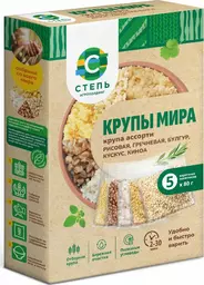 Крупа Степь ассорти в пакетиках рисовая, гречневая, булгур, кускус, киноа 400г