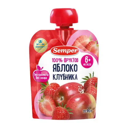 Пюре Semper яблоко и клубника с 6 месяцев 90г