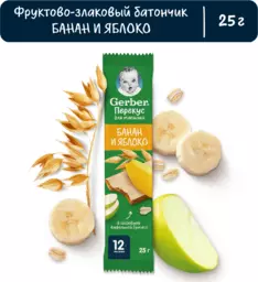 Батончик фруктово-злаковый Gerber банан и яблоко 25г с 12 месяцев