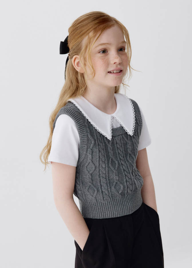Укороченный вязаный жилет для девочек Sl5808050909_39