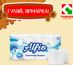 Туалетная бумага 3 слоя 8 рулонов, Тм Alfio