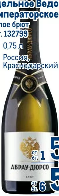 Вино игристое Абрау Дюрсо Удельное Ведомство Императорское Белое брют 0.75 л