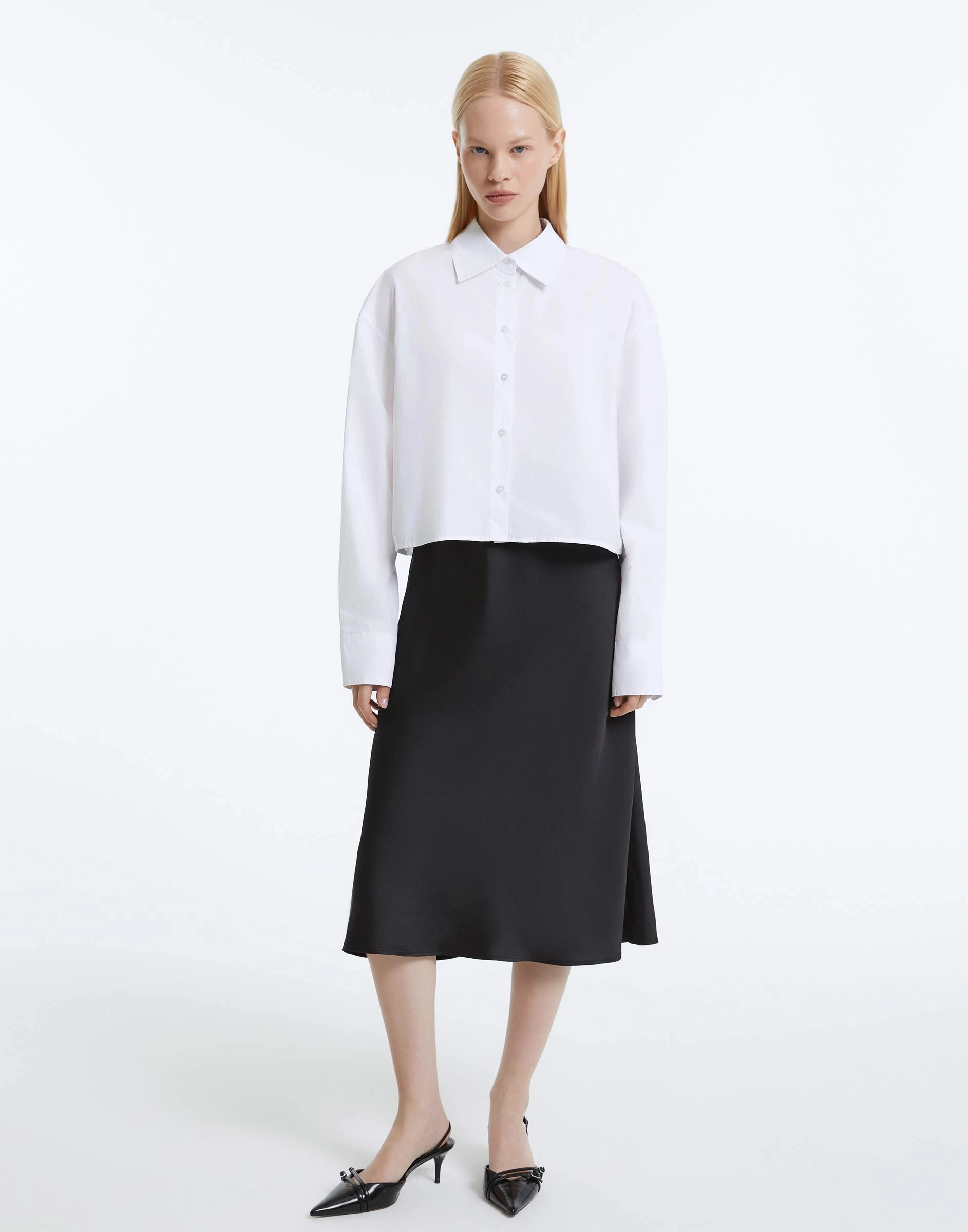 Чёрная сатиновая юбка-миди со шнурком Gsk018638-1