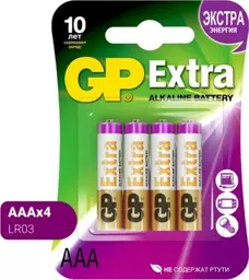 Батарейки Gp Ааа мизинчиковые алкалиновые Extra Alkaline, набор 4 шт (24Axa21-bc4)