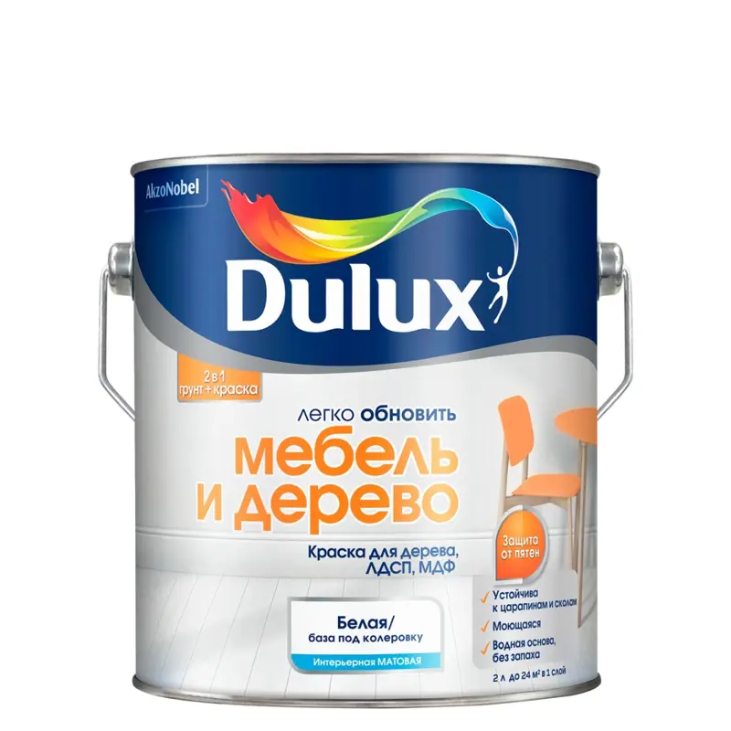 Краска Dulux Легко обновить мебель и дерево белая матовая 2 л