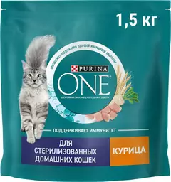 Сухой корм Purina One для стерилизованных домашних кошек с курицей, 1.5кг