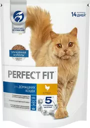 Сухой полнорационный корм Perfect Fit для живущих в помещении взрослых кошек с курицей, 650г