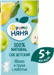 Сок Фрутоняня яблочно-грушевый с мякотью, 200мл
