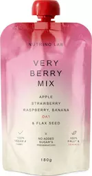Пюре Nutrino Lab фруктовое-злаковое пастеризованное яблоко-клубника-малина-банан c добавлением овсянки и семян льна, 180г