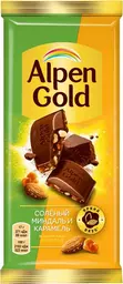 Шоколад Alpen Gold молочный с соленым миндалем и карамелью, 80г