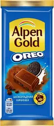 Шоколад Alpen Gold молочный с шоколадной начинкой и кусочками печенья Орео, 85г