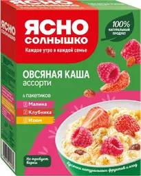Каша овсяная Ясно Солнышко Ассорти клубника-малина-изюм, 6х45г