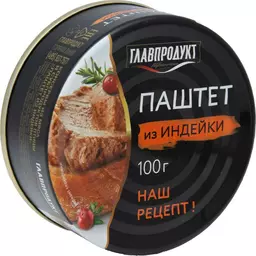 Паштет нежный Главпродукт из печени индейки из мяса и субпродуктов птицы, 100г
