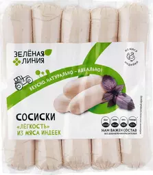 Сосиски Лёгкость из мяса индеек варёные Зелёная Линия, 250г