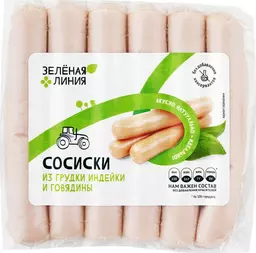 Сосиски из грудки индейки и говядины из мяса птицы 1 сорт Зелёная Линия, 240г