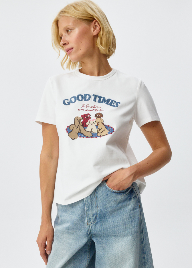 Футболка с принтом и плюшевыми буквами Sl5809010232_2