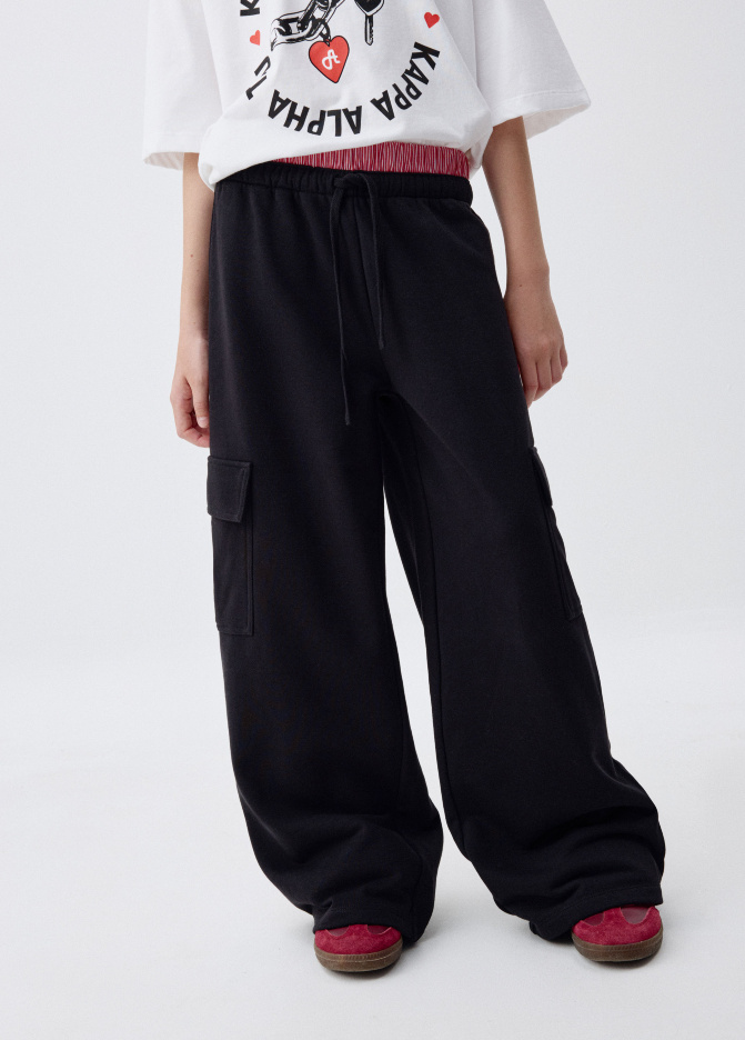 Широкие брюки карго с двойным поясом для девочек Sl5809051505_50
