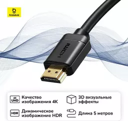 Кабель цифровой аудио-видео Baseus Hdmi 2.0 5м (Cakgq-d01) Black