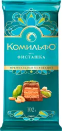 Шоколад молочный и белый Комильфо Фисташка, 102г