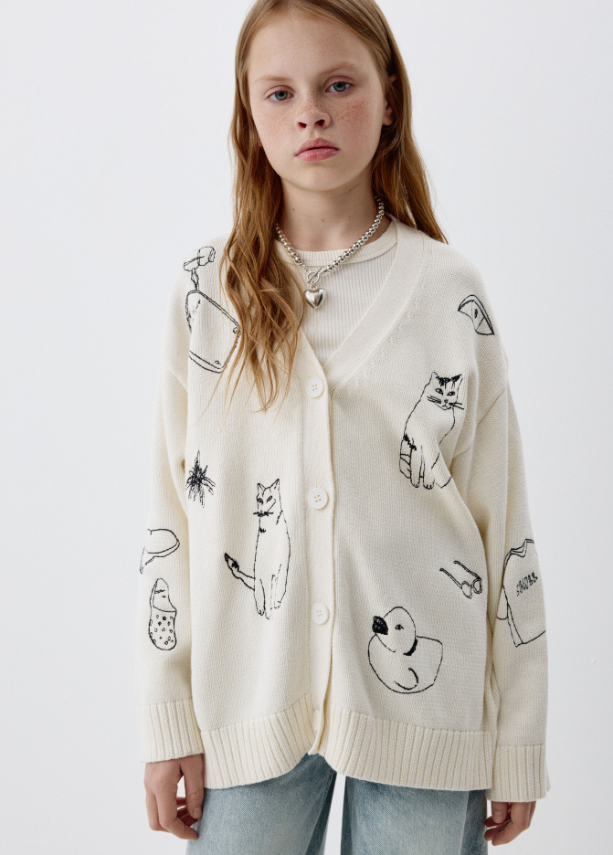 Вязаный кардиган с жаккардовым принтом для девочек Sl5808050618_2