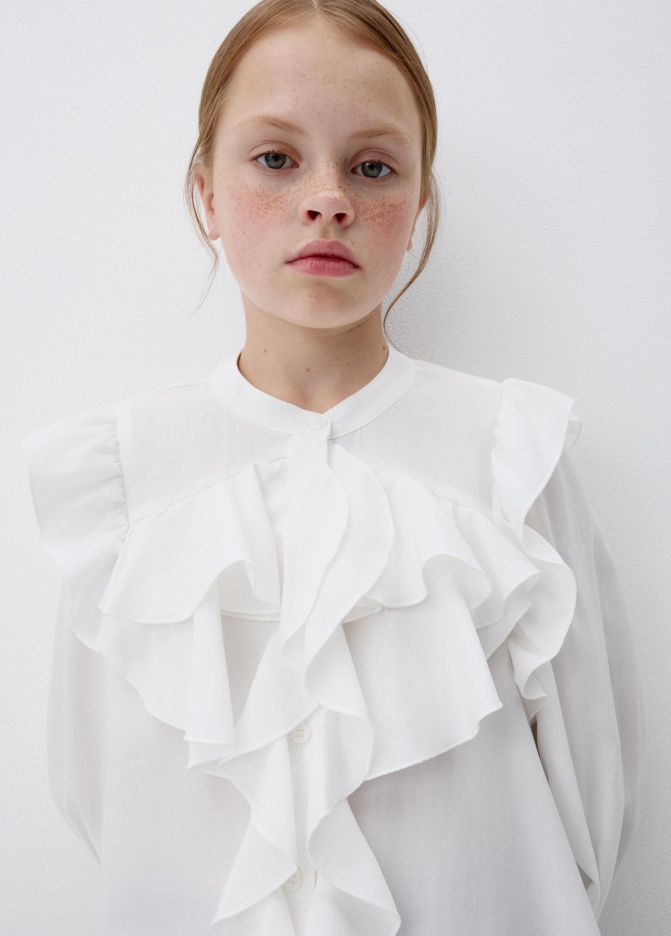 Нарядная белая блузка с жабо для девочек Sl5808050529_1