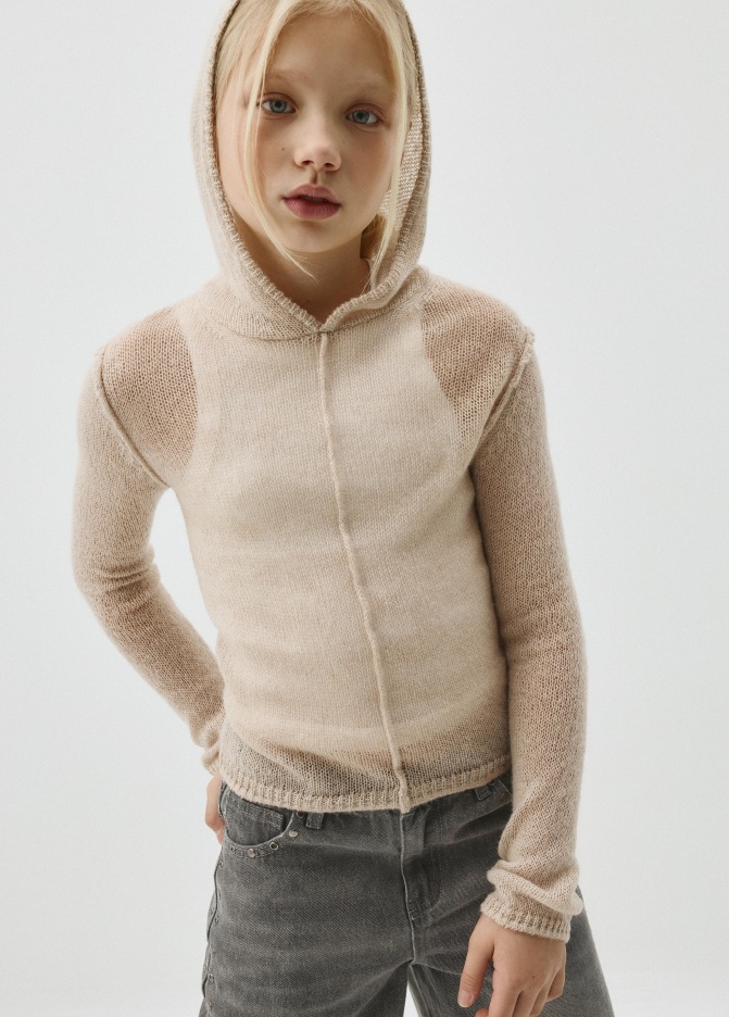 Вязаное худи с содержанием шерсти и мохера для девочек 5801050605_130