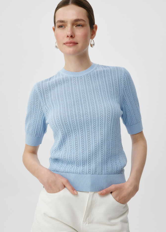 Джемпер с коротким рукавом ажурной вязки 5805010606_49