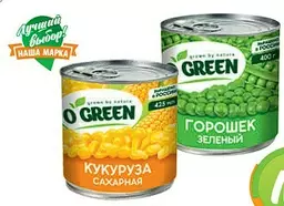 Горошек зеленый/кукуруза сладкая O' Green, 400 г/425 мл