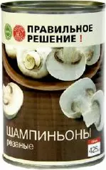 Шампиньоны резаные Правильное решение, 425 мл