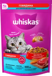 Сухой корм для стерилизованных кошек Whiskas с говядиной и вкусными подушечками, 350 г
