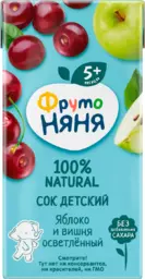 Сок Фрутоняня яблочно-вишневый осветленный с 5 месяцев, 200 мл