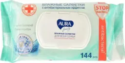 Влажные салфетки Aura big-pack антибактериальные дезинфицирующие с крышкой, 144 шт