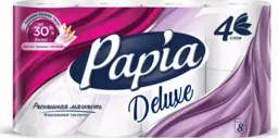 Туалетная бумага Papia Deluxe белая 4 слоя, 8 рулонов