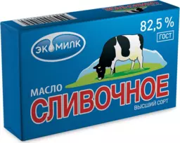 Масло сливочное Экомилк несоленое высший сорт 82.5%, 180 г