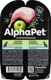 Корм влажный для собак с чувствительным пищеварением Alphapet кролик и яблоко мясные кусочки в соусе, 100 г