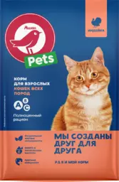 Сухой корм для кошек Ашан Красная птица для всех пород с индейкой, 1.5 кг
