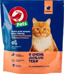 Сухой корм для кошек с чувствительным пищеварением Ашан Красная птица с индейкой, 600 г