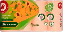 Туалетная бумага Ашан Красная птица Абрикос 3 слоя, 8 рулонов