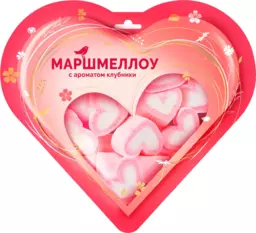 Маршмеллоу Ашан Красная птица сердце в ароматом клубники, 90 г