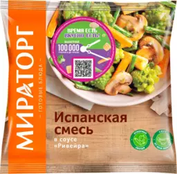 Овощная смесь Мираторг Испанская морковь фасоль стручковая кукуруза початки грибы шампиньоны в соусе Ривейра замороженная, 400 г