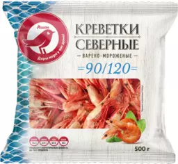 Креветки Ашан Красная птица 90/120 варено-мороженые, 500 г